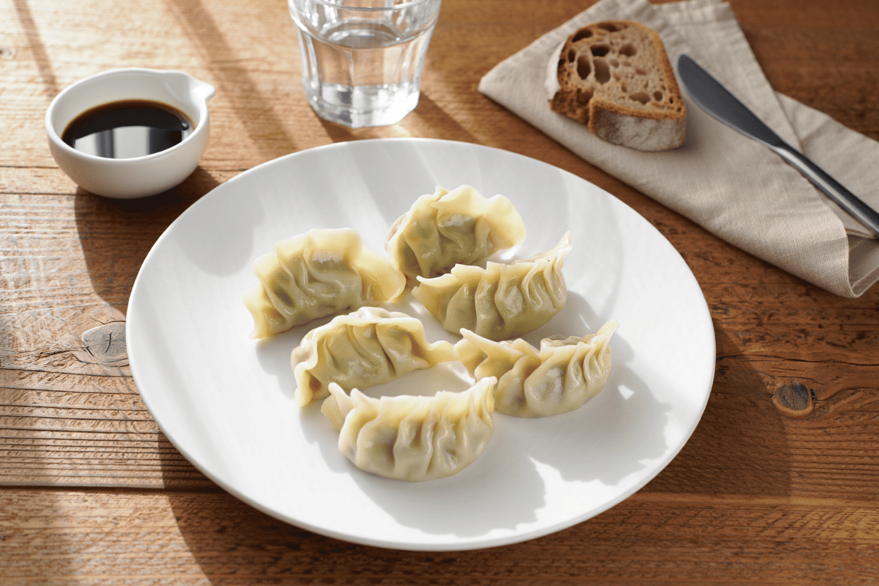 Estas gyozas al vapor de pollo y verduras son como ese compañero de oficina que siempre llega puntual: suaves, ligeras y eficientes, pero con un relleno que sorprende más que la reunión de las 9:00. 🥟⏰👔