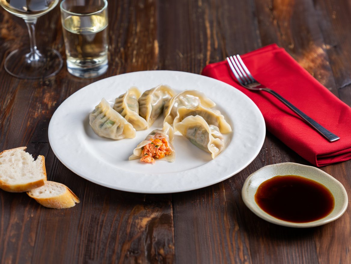 Si juntas muchas gyozas de salmón en fila, puedes formar un trenecito oriental que te lleva directo al postre. 🥟🚂😂