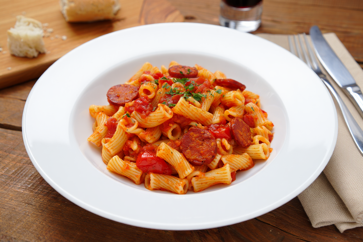 🍝 Macarrones con tomate y chorizo: la receta que une a generaciones y rompe dietas por igual. Plato humilde, contundente y tan sabroso que hace que el tenedor se mueva solo. 🔥😅