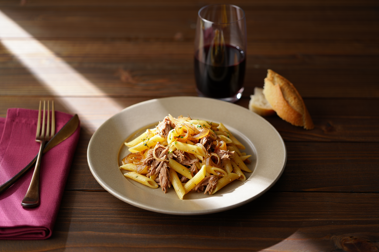 Estos macarrones con pulled pork son la fusión que nadie pidió pero todos necesitamos 🍝🥩. Tan sabrosos que hasta el microondas de la oficina va a querer repetir 😅🔥.