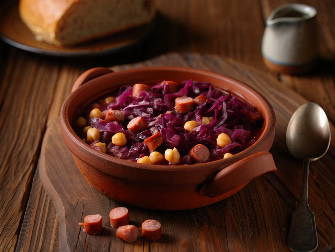 La salchicha Bratwurst se siente como una turista alemana de vacaciones en un mar de garbanzos españoles. ¡Fusión europea en mi tupper! 😂