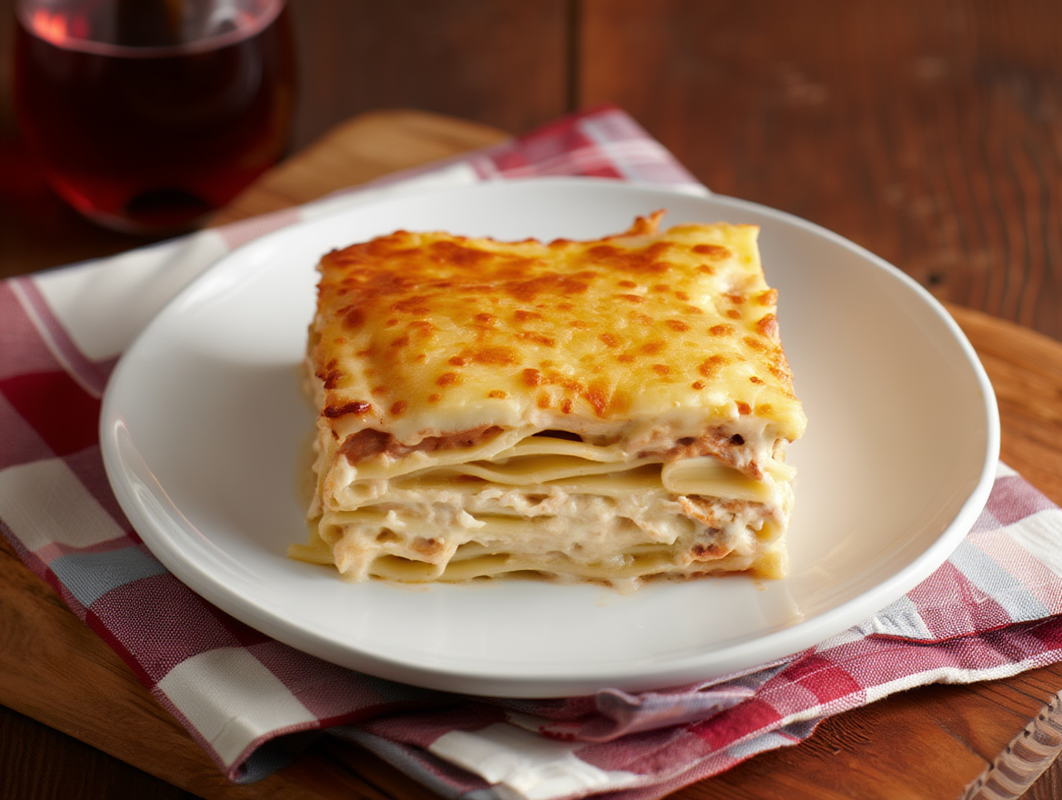 Tagliatelle gratinados al ragú blanco