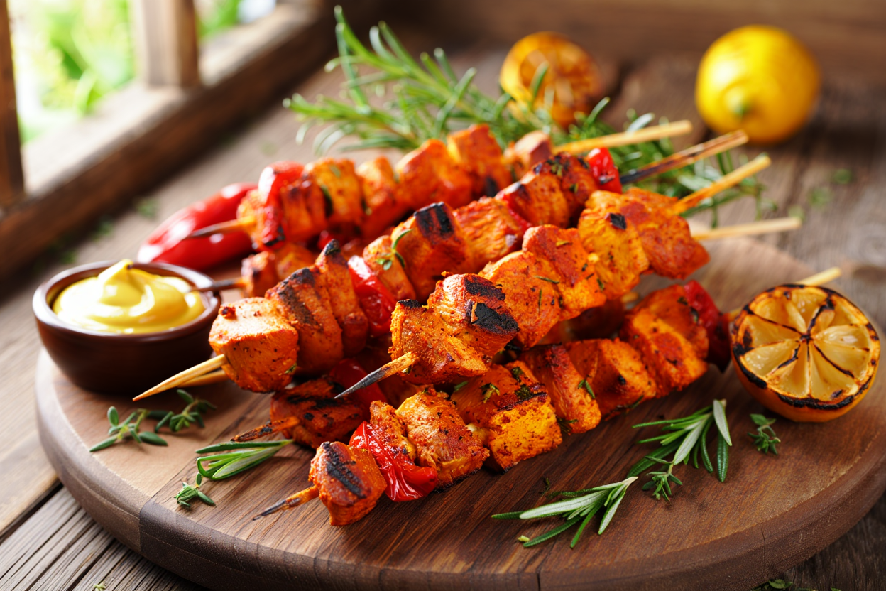 Pinchos morunos rojos que saben a verano, brasas y buen rollo. Si tienes hambre, cuenta rápido… porque desaparecen del plato antes de terminar la frase.😅🌶️🍢