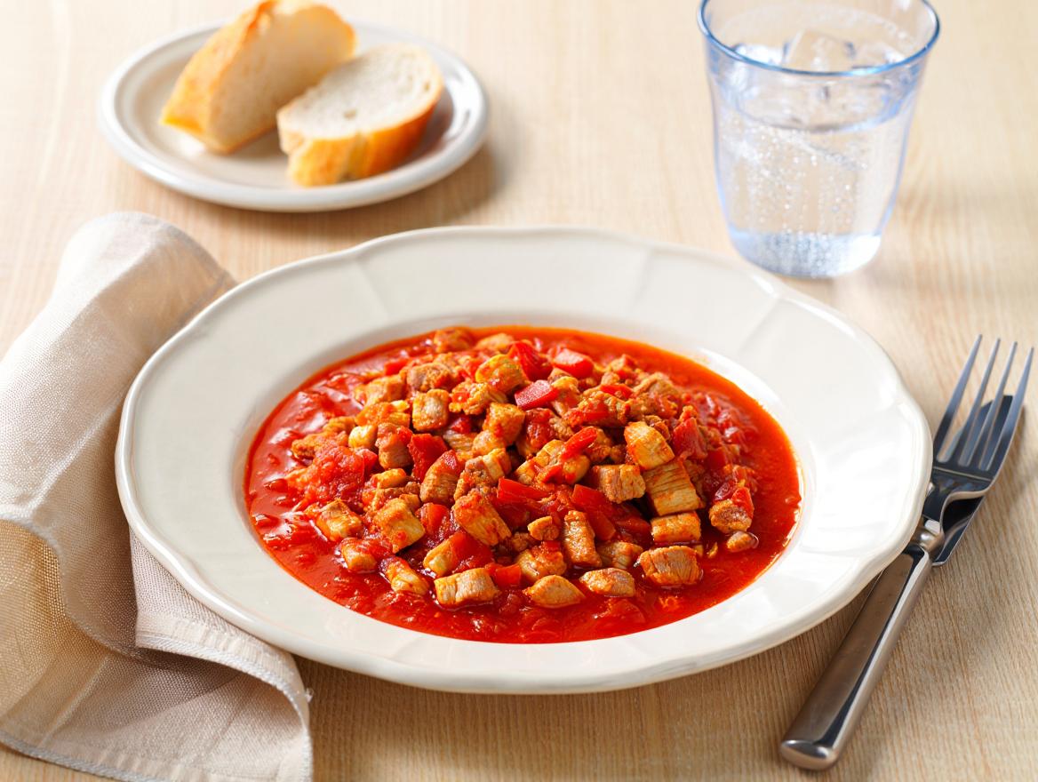 Aceite de oliva virgen extra, Cebolla, Pimienta, Sal, Tomate frito, Zanahoria, Magro de cerdo, Pimiento verde, Vino tinto, Ajo