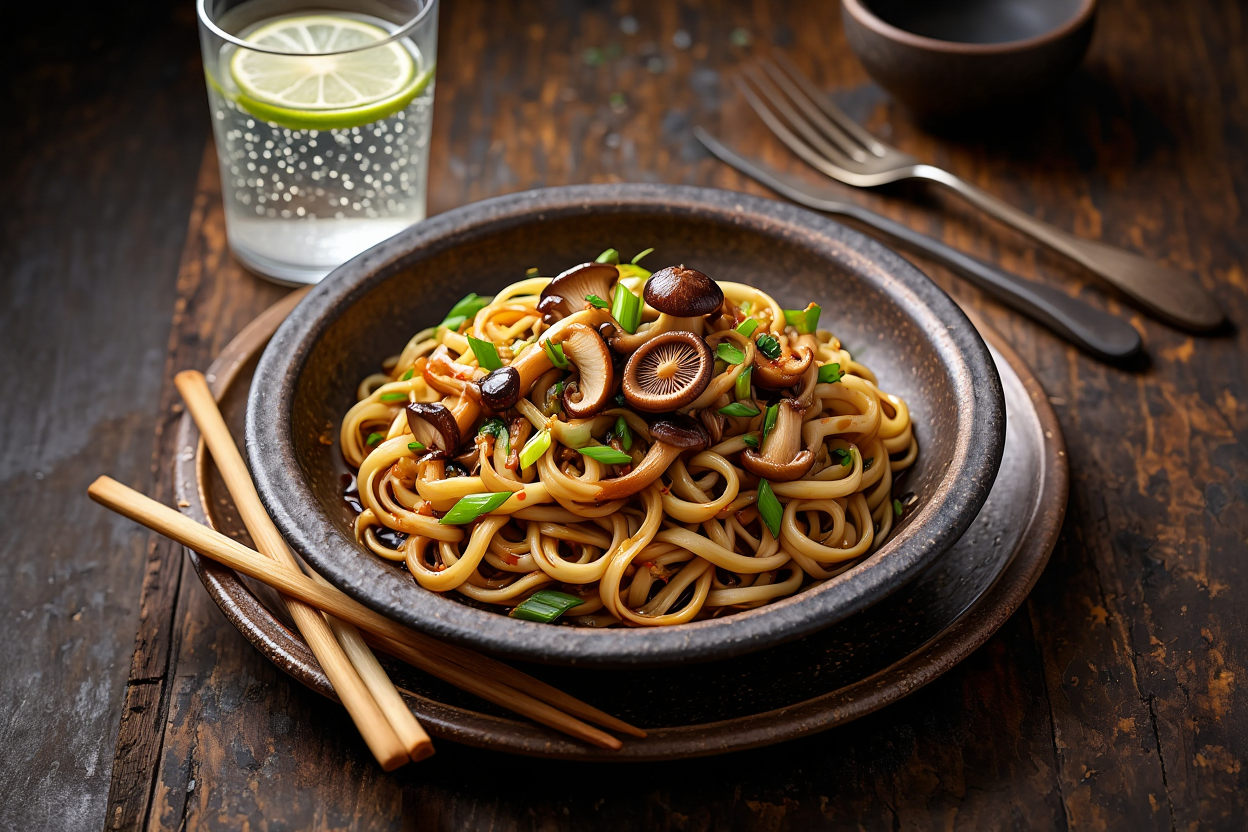 Tallarines con setas y soja