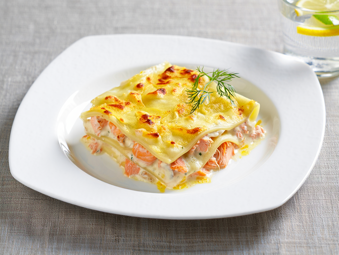 Aceite de oliva virgen extra, Harina, Leche, Cebolla, Pimienta, Sal marina, Nuez moscada, Mozzarella, Parmesano, Salmón, Orégano
