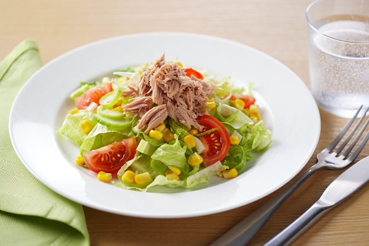 Atún, Lechuga iceberg, Tomate natural, Maíz, Apio