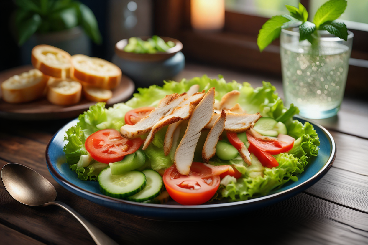 El pollo kebab está intentando explicarle al apio qué hace en una ensalada, pero el apio solo habla "idioma huerta" y no se entienden. ¡Conflicto diplomático! 🌍🗣️😂