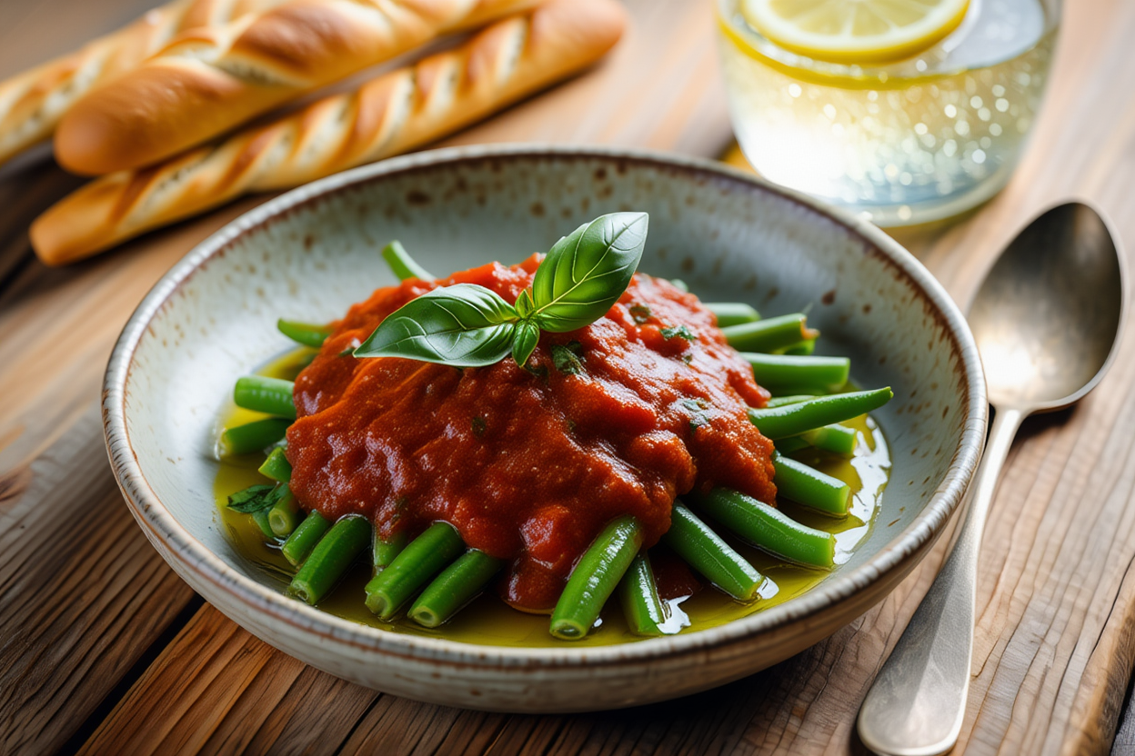 Judías verdes con tomate y albahaca