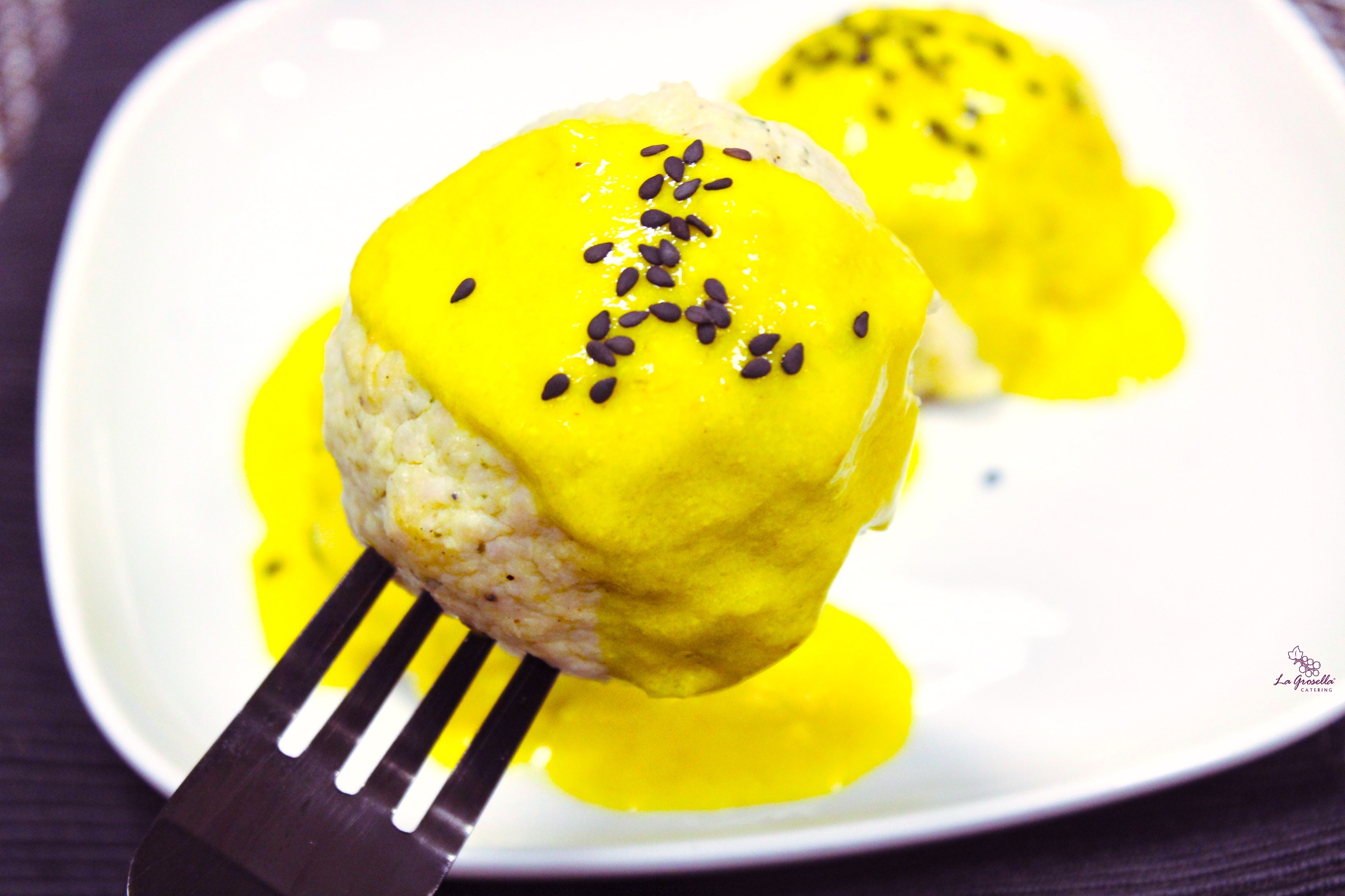 Albóndigas de pollo bañadas en una cremosa salsa de curry, coronadas con un toque crujiente de sésamo negro. Cada bocado te lleva a un festín de sabores exóticos y reconfortantes que alegran cualquier día 😋🍛