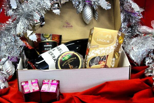 Perfecta para una ocasión especial en pareja. Deléitate con el galardonado vino tinto Habla de la Tierra, delicioso paté de pato y picos de pan gourmet, queso cheddar seleccionado, deliciosos bombones Lindor.