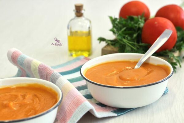Crema de tomate con zanahoria y jengibre. Una rica, nutritiva y sabrosa crema de tomate, sin nata añadida para que sea aún más ligera. Se puede comer fría o caliente, tú eliges.