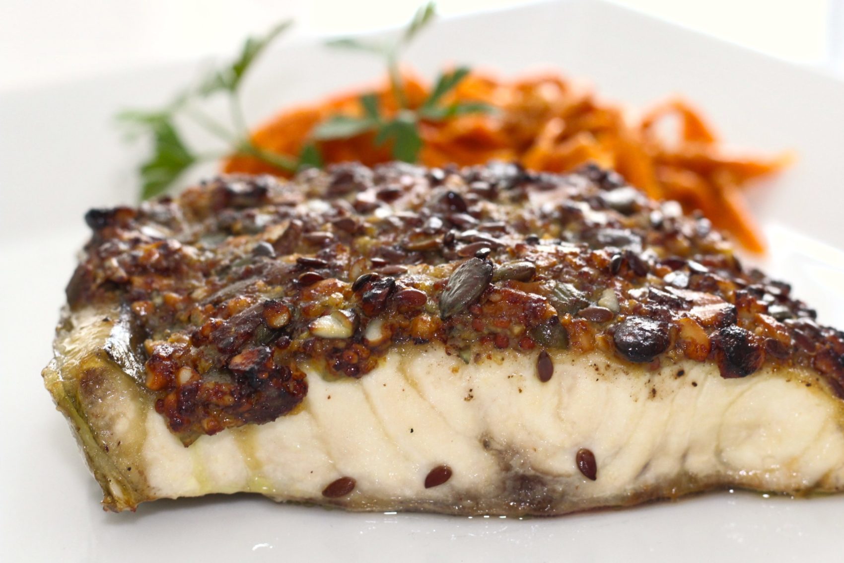 El esturión es un pez particularmente apreciable porque de él se obtiene el afamado y preciado caviar; Lo hemos hecho al horno con una costra de frutos secos, el resultado es de una textura en boca que sorprende, tierna y muy jugosa; ofrece unos matices que no te esperas.