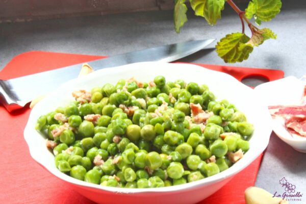 Un clásico que nunca falla: guisantes con jamón. Sabrosos, suaves y con ese toque salado que te hace olvidar por un momento que sigues en la oficina y no en la mesa de la abuela. Eso sí, cuidado: ¡puede provocar envidias en tus compañeros! 😅🟢🥓