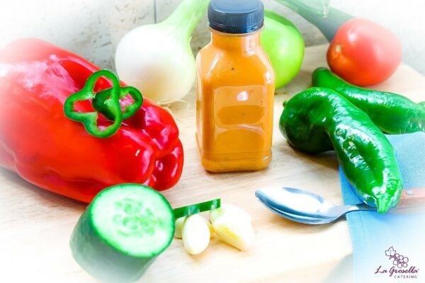 El gazpacho es una sopa fría ideal para estos días de calor. Sus ingredientes a base de hortalizas frescas hacen que sea un plato refrescante y nutricional. SERVIDO EN 4 ENVASES INDIVIDUALES 250Ml.X4