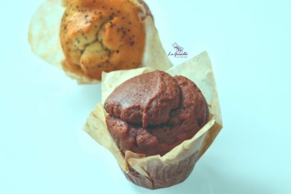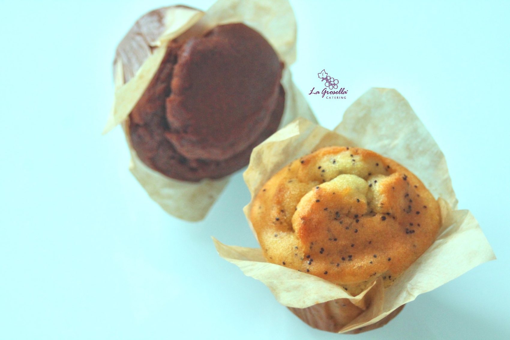 Surtido de muffins sin gluten en 2 sabores: chocolate y limón con amapola. Peso neto por unidad: 80 gramos. Pedido mínimo de 6 unidades.
