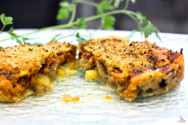 Hoy os traemos esta maravillosa nueva receta de Musaka vegana, un plato tradicional Griego a base de berenjena, y en este caso en vez de carne utilizamos soja texturizada y para hacer la bechamel utilizamos leche de avena y polenta de avena.
