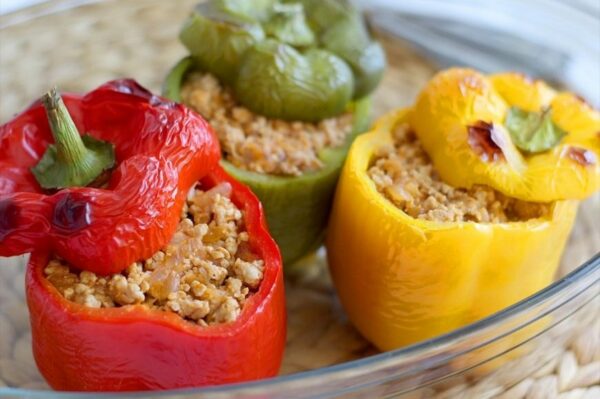 Nueva receta de pimientos italianos rellenos de carne picada de ternera y arroz, en salsa de tomate y yogur griego. Receta típica de la Europa del este. Te va a sorprender!