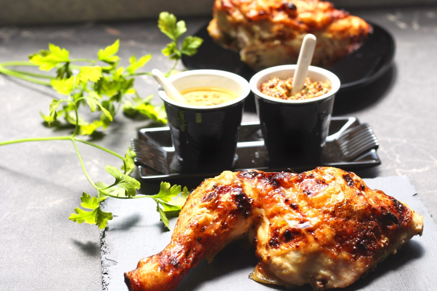 Jugosos, dorados y con dos mostazas que se llevan mejor que tus compañeros en una reunión. Diplomacia culinaria en su máxima expresión. 🍗🤝😂