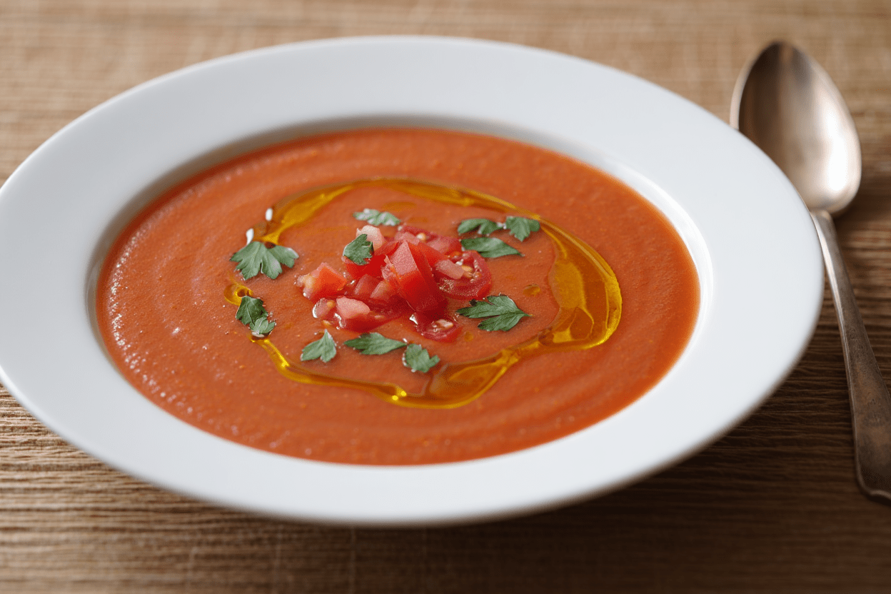 Este salmorejo parece tranquilo y apetitoso 🍅, pero mientras lo disfrutas, tu lista de tareas sigue creciendo. Al menos la cuchara consuela 😅🥄.
