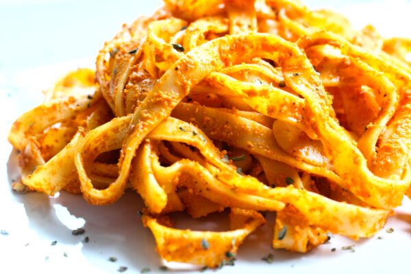Receta de tortellinis con salsa alla calabrese. Receta sencilla de pasta italiana y la vez tremendamente rica.