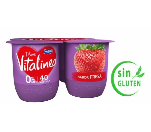 Yogur con sabor a fresa de Danone con 0% de materia grasa. 40 Kcal/100gr. Cantidad neta 125Gr.